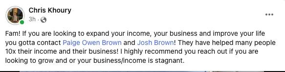 Paige leveraged her experience as a counselor to create PC Brown Coaching. After nearly 15 years in the school she finally got burned out, bud knew she did not want to go to another 9-5. Sparked by Josh's success with leaving the classroom, she started her own life coaching business. Originally working 1-1 she make a name for herself working with fellow entrepreneurs and executive.